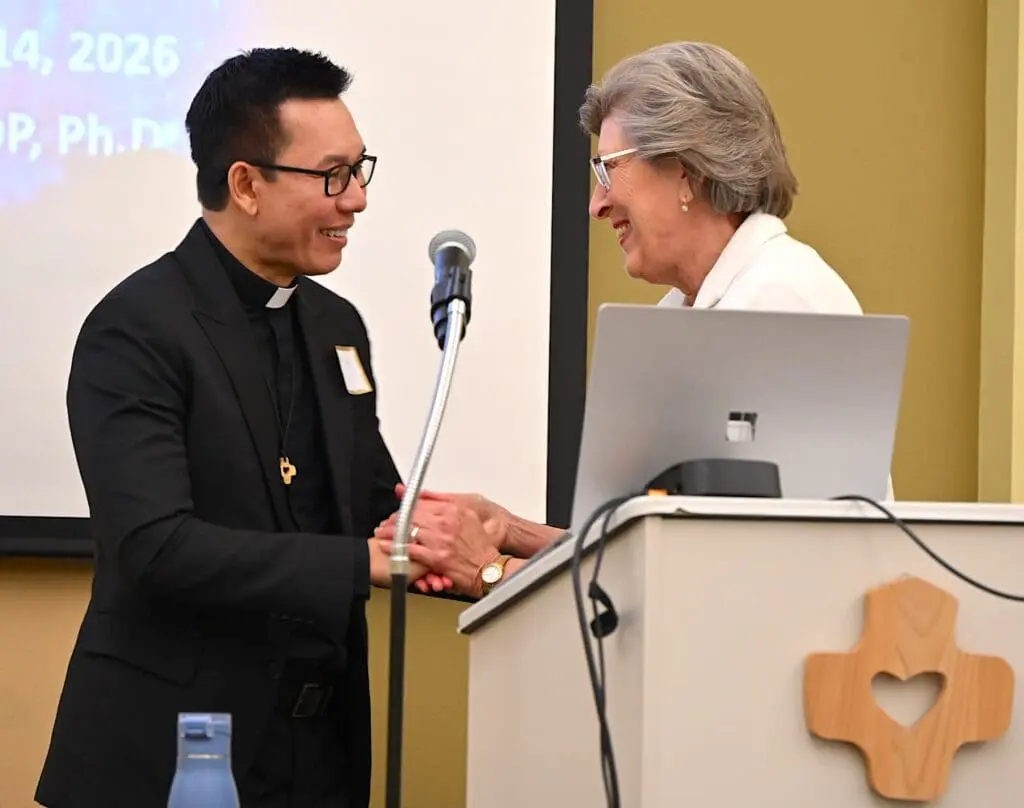 Sr. Barbara Reid, OP, spoke on the topic “The Prophetic Nature of Religious Life.” A Distinguished Professor of New Testament Studies, Sr. Barbara is the former president of Catholic Theological Union, which she has served at since 1988. She is also past president of the Catholic Biblical Association and is an internationally acclaimed speaker and writer. Fr. Vien Nguyen, SCJ, is pictured above, welcoming his former professor to the podium.