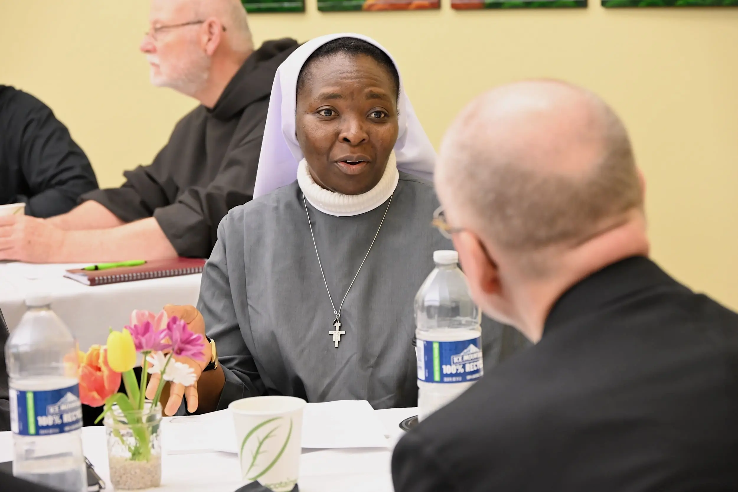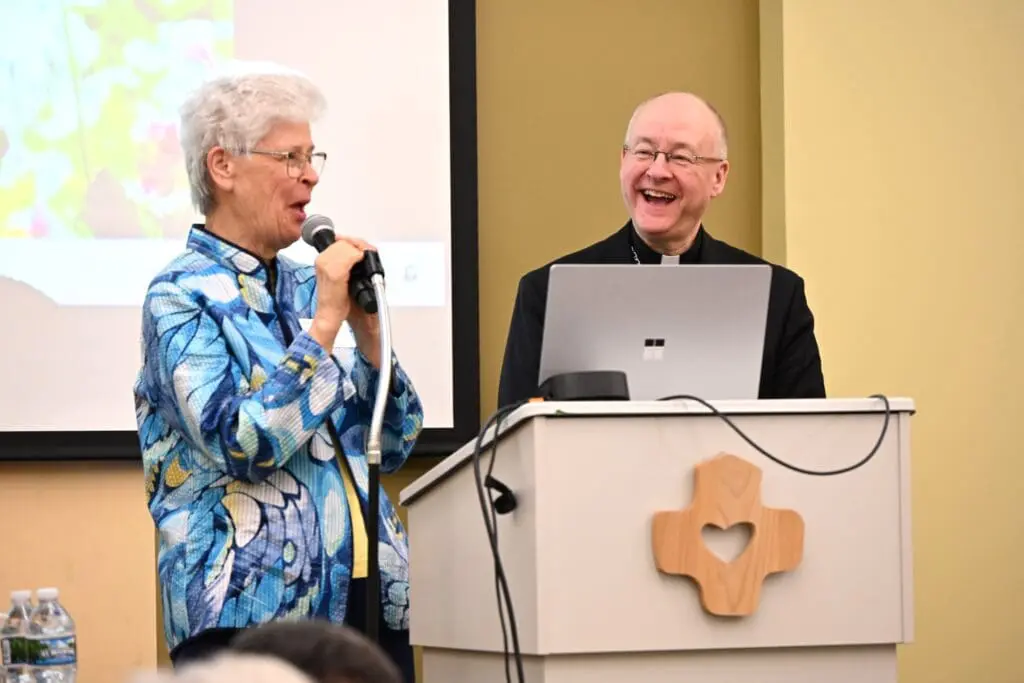 On April 14, over 80 representatives of religious congregations in the Archdiocese of Milwaukee gathered at the US Province Conference Center in Franklin, WI, to spend a morning with Archbishop Jeffery Grob, as well as Auxiliary Bishop James T. Schuerman. The event was organized by the Archdiocese’s Vicar for Religious: Sr. Diana De Bruin, OSF. Appointed by Archbishop Grob in September, 2025, she filled a position that had been vacant since 2010.