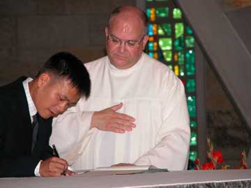 He professed his first vows in 2006. On January 30, Frater Duy, 31, made his final profession with the Priests of the Sacred Heart during a ceremony at Sacred Heart Monastery.