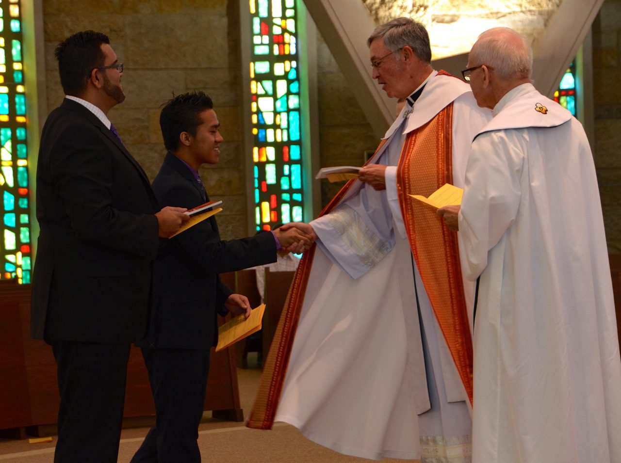 On Tuesday, August 14, James Nguyen and Juan Carlos Castaneda Rojas were received into the novitiate for the U.S. Province of the Priests of the Sacred Heart during a prayer service at Sacred Heart Monastery/School of Theology. Fr. John Czyzynski, SCJ, is their novice master.