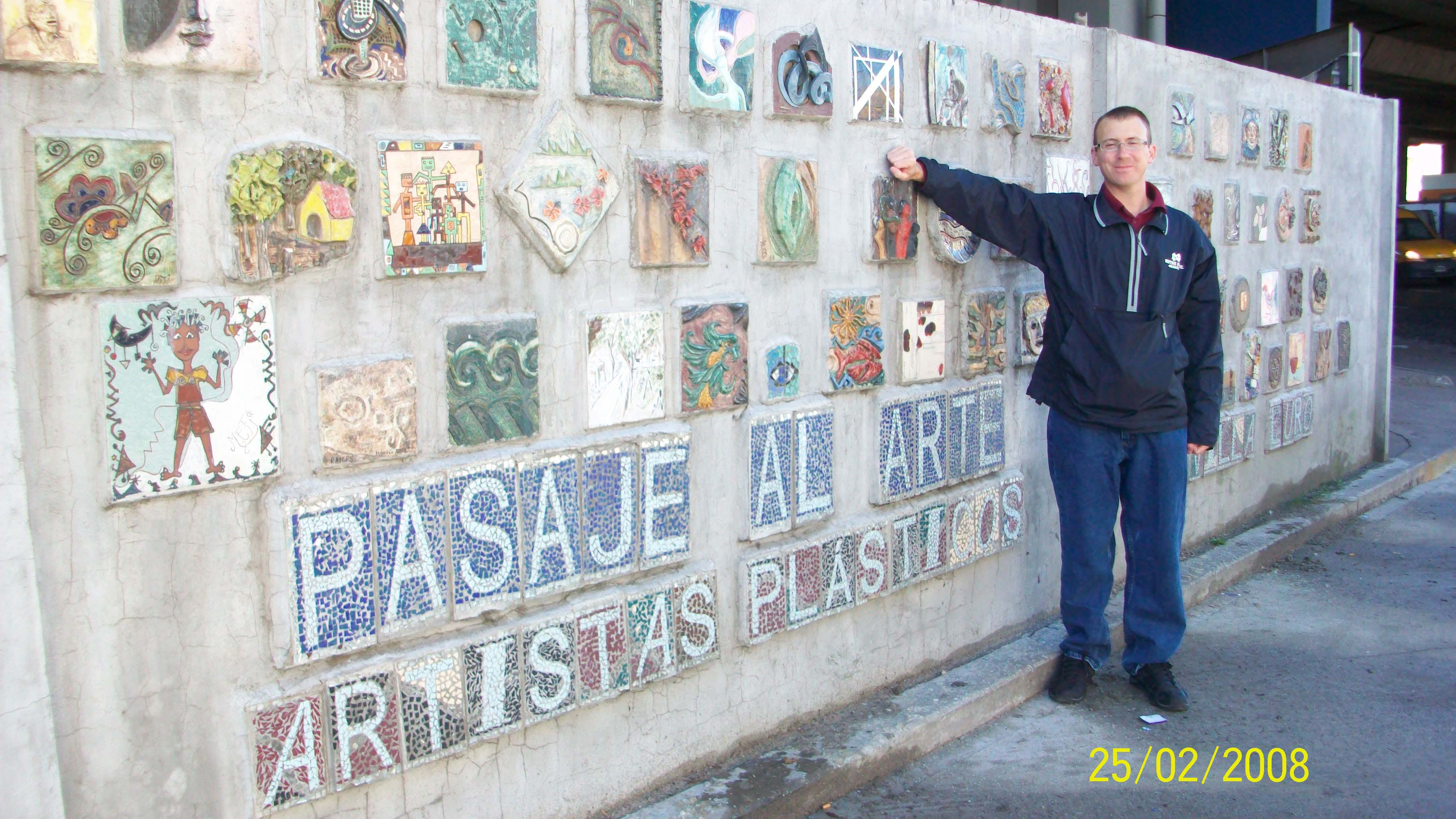 Frater Greg Schill next to a public art display in Buenos Aires, Argentina. He and Frater Duy Nguyen are with the SCJ community in Argentina studying Spanish.