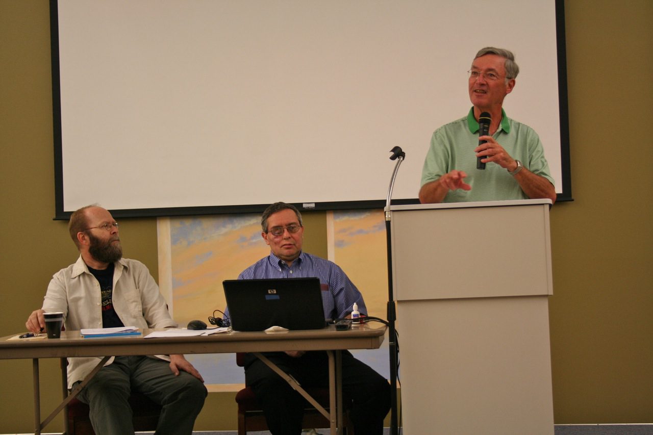 Fr. Tom Cassidy brings the Election Assembly to a close while Fr. Greg Murray (moderator) and Br. Frank Presto (provincial secretary) look on. A transitional assembly as a preparation for the new administration will be held at the Provincial Conference Center July 26-27.