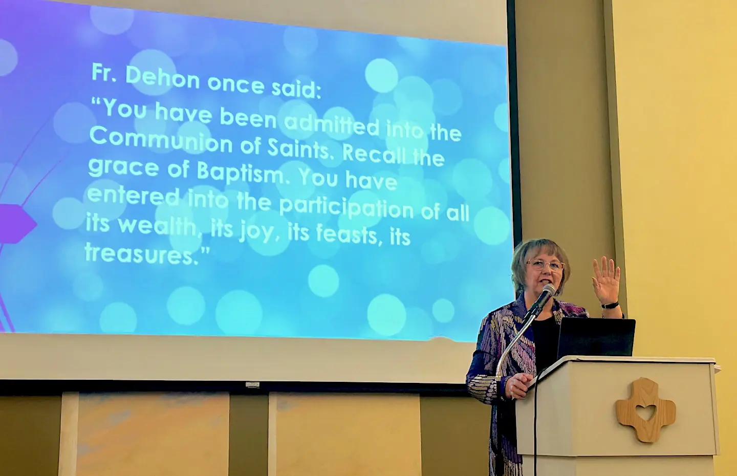 The final Catholic Women Leaders dinner for winter/spring was held at the Provincial Conference Center on April 8th. An outreach of the Dehonian Associates office, the gathering provides spiritual formation and community fellowship for women who work for the Church. Over 30 women gathered to hear Mary Lestina speak on “Holiness in Our Midst, the Call of Young Saints.” Mary is Pastoral Associate at St. Dominic’s parish in Brookfield, WI, and is becoming a Dehonian Associate this June. She began the talk by referencing a quote by Fr. Leo John Dehon: “You have been admitted into the Communion of Saints. Recall the grace of baptism. You have entered into the participation of all its wealth, its joy, its feasts, its treasures.” The dinner series will resume next fall.
