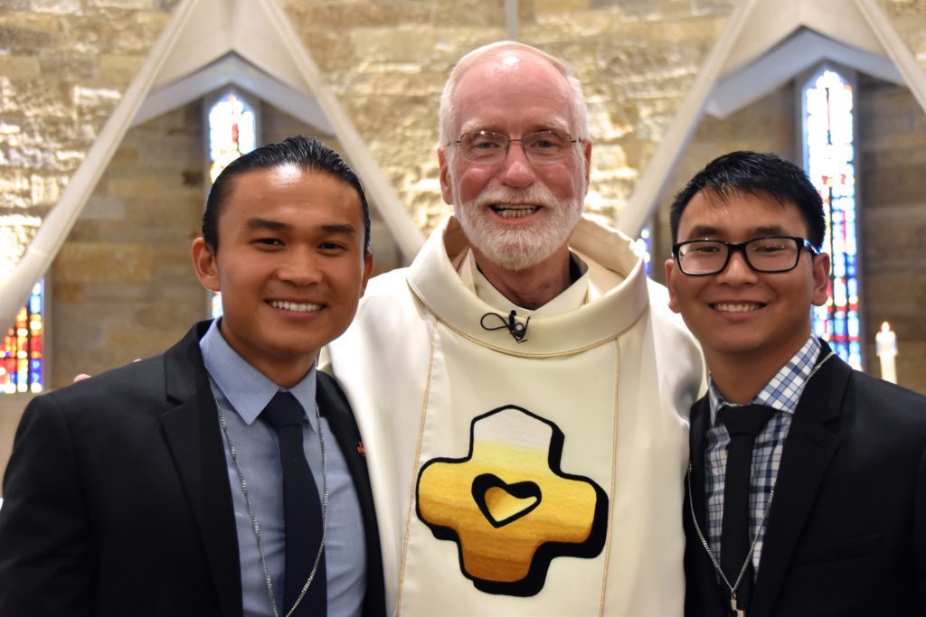 With the profession of their first vows on August 15, Phong “Paul” Hoang and Henry Nguyen became Dehonians, members of the US Province of the Priests of the Sacred Heart. The vows were received by Fr. Ed Kilianski, SCJ, US provincial superior, during a liturgy in the main chapel at Sacred Heart Monastery / Sacred Heart Seminary and School of Theology.