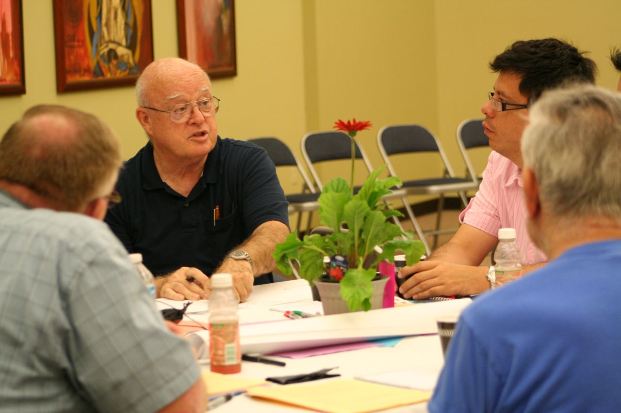 Fr. Richard MacDonald talks during small group discussions at last year's summer assembly following the June elections. This year's assembly begins with the Province Jubilee Celebrations on July 11.