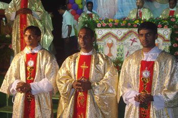 On June 2 the Indian District celebrated the ordination of two SCJs to the diaconate, Dn. Sampathi Balaraj and Dn. Naveen Kumar Pudota, and one to the priesthood, Fr. Lenin James. The ceremony took place at the Sacred Heart Ashram in Nambur, Guntur. Novice Kiran Sagar wrote about the ceremony for the Generalate’s website. Click here to read his account as well as see photos from the ceremony.