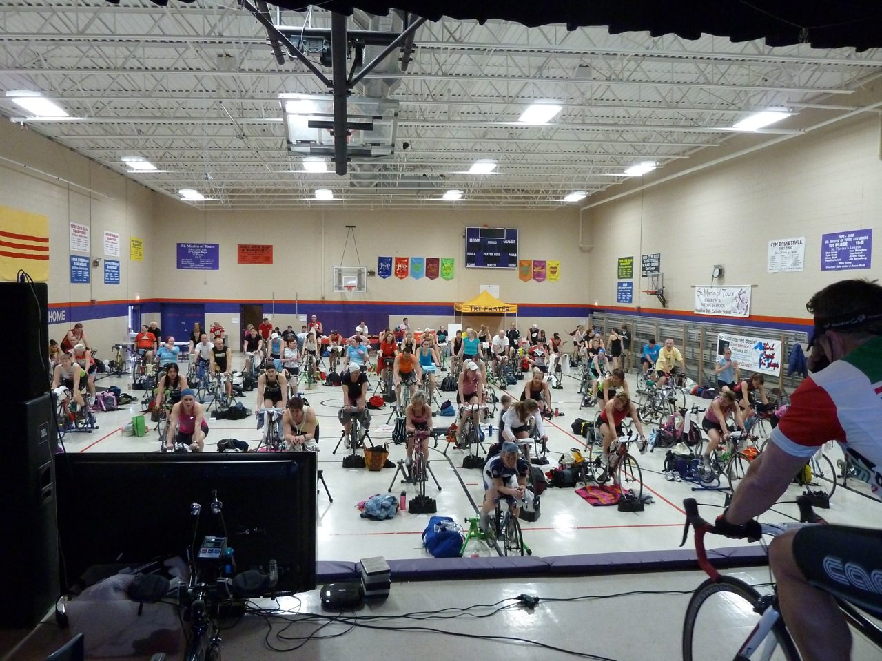 Cyclists filled the gym at St. Martin of Tours in Franklin on March 12 to raise money for the parish food pantry.