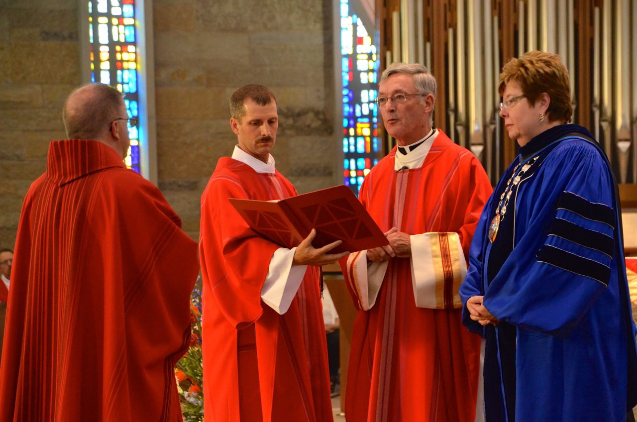 The start of the new school year at Sacred Heart School of Theology got underway last week with the annual Opening Mass on August 29. During it, Msgr. Ross Shecterle, a diocesan priest from Milwaukee, was installed as the 19th president-rector of the seminary. He is the first non-SCJ to be appointed to the office. Among those in attendance was Bishop Donald Hying, auxiliary bishop of Milwaukee. The archdiocese’s seminarians do their academic training at SHST.