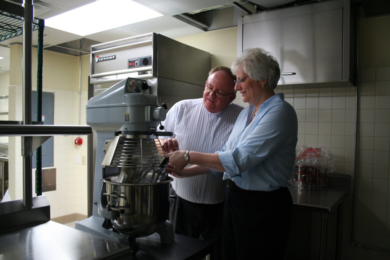 Dn. David Nagel and Barb Haag, food services director, take a look at the new equipment in the SHML kitchen.